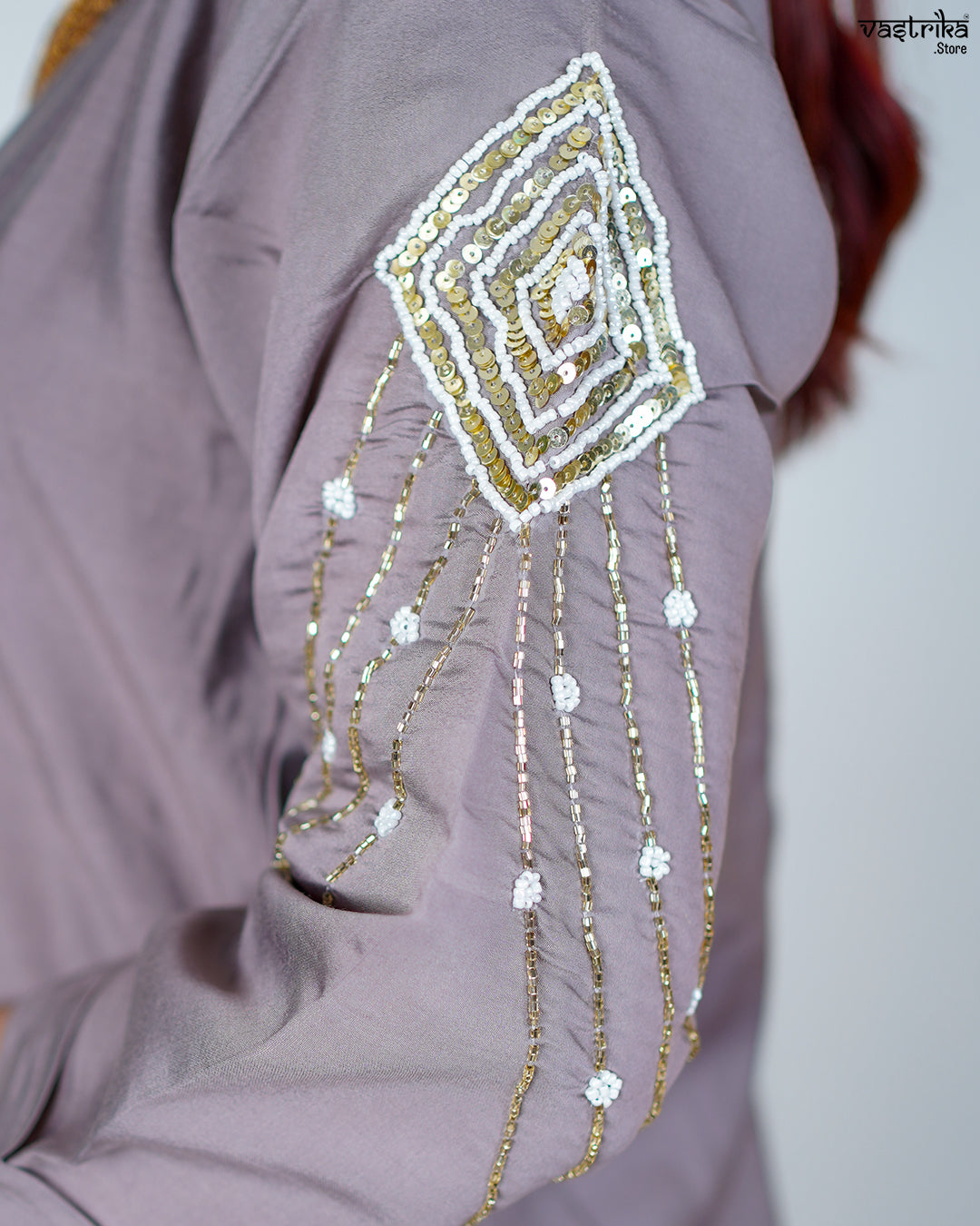 Step out in style with this grey masleen coord set. The collared top features intricate handwork and sequence detailing on the sleeves, with additional handwork on one side of the front and back, paired with a matching masleen Afghani salwar. Perfect for festive occasions or casual gatherings, this set blends traditional craftsmanship with modern elegance. Fabric Details: Coord Set: Masleen | Collar | Handwork & Sequence | Full Sleeve Work | One-Side Front & Back Handwork Bottom: Masleen | Afghani Salwar Colour: Grey