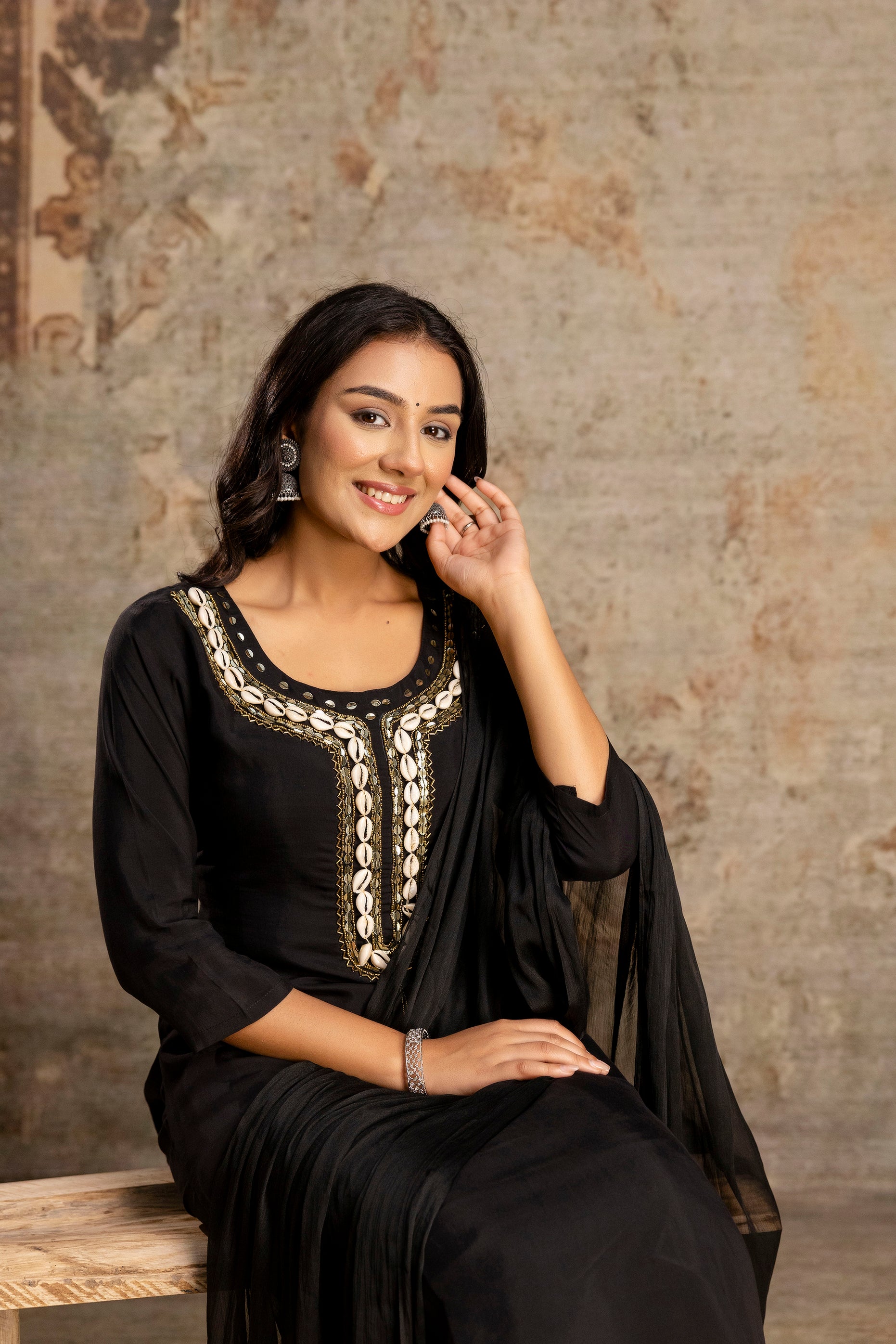 A stylish round-neck kurti with intricate codi work, paired with sleek plain pants for a modern, minimalist look. The plain dupatta completes the set, offering a clean, elegant finish perfect for everyday wear.